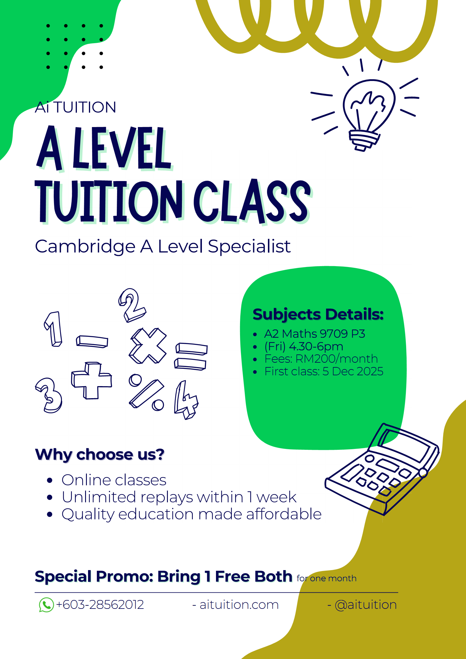 A LEVEL AS Mathematics by KK LEE. Attend the classes via Zoom.